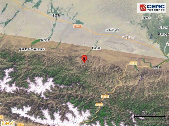 周边县城:震中距墨玉县85公里、距皮山县88公里、距和田市95公里、距洛浦县117公里、距和田县149公里,距昆玉市47公里,距乌鲁木齐市1064公里。